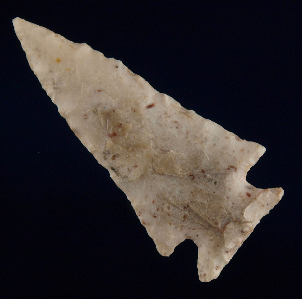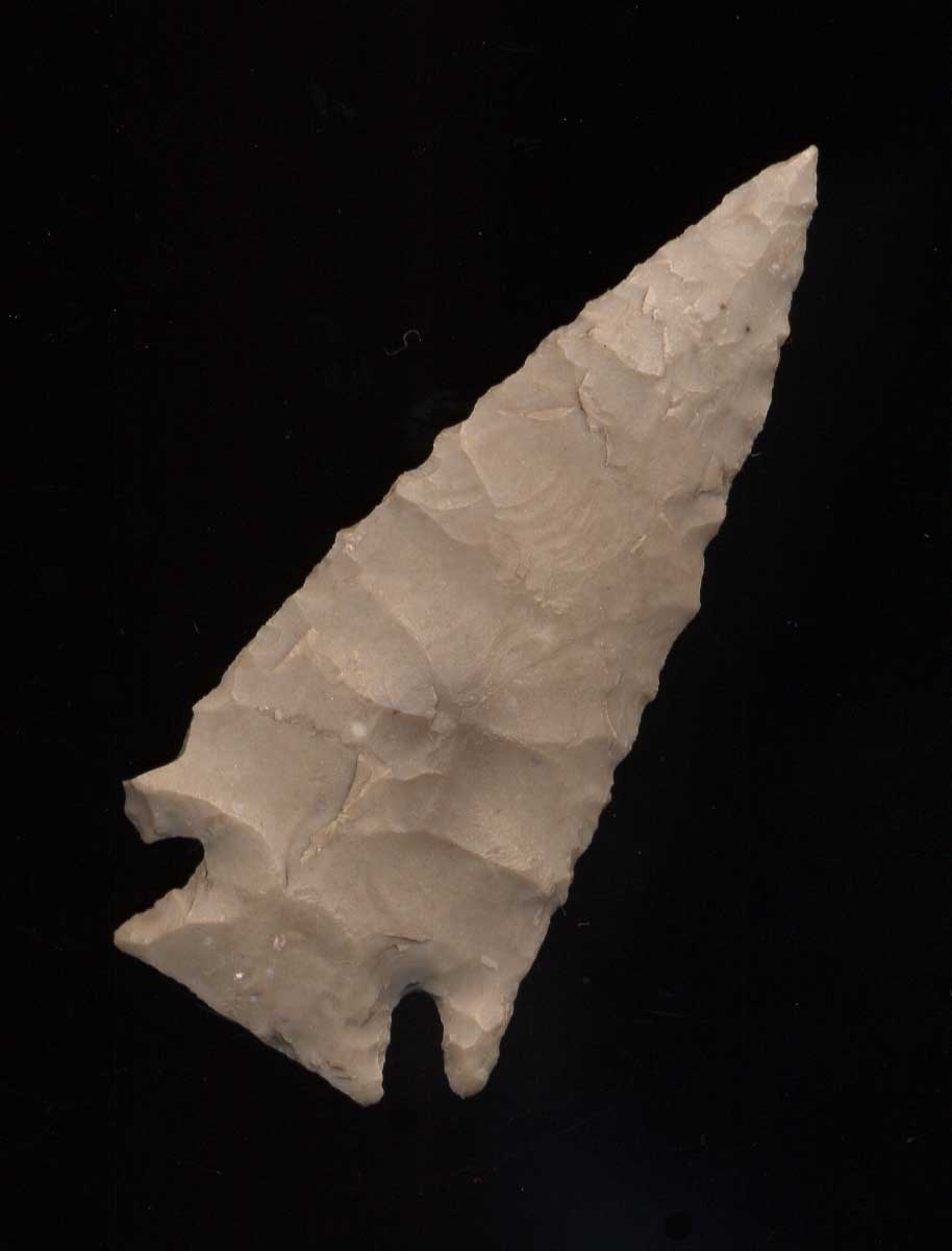 - Description: Super Thin Ensor - This Super Thin, Well Flaked Ensor was found by Robert L. Stathem near Burnett, Texas. It has a Needle Tip and good symmetry. It has one ancient ding to one ear. The Ensor type dates from Late Archaic till Early Woodland, 4,000 BP till 1,500 BP. This piece is from the collection of John & Robert Stathem of Shreveport, Louisiana. Robert and his father John hunted artifacts in Louisiana, Texas, New Mexico, Oklahoma, Mississippi, Arkansas, Tennessee, and Oklahoma. Ex- Robert Stathem Collection, Ex- Monty & Jewdy Pennington