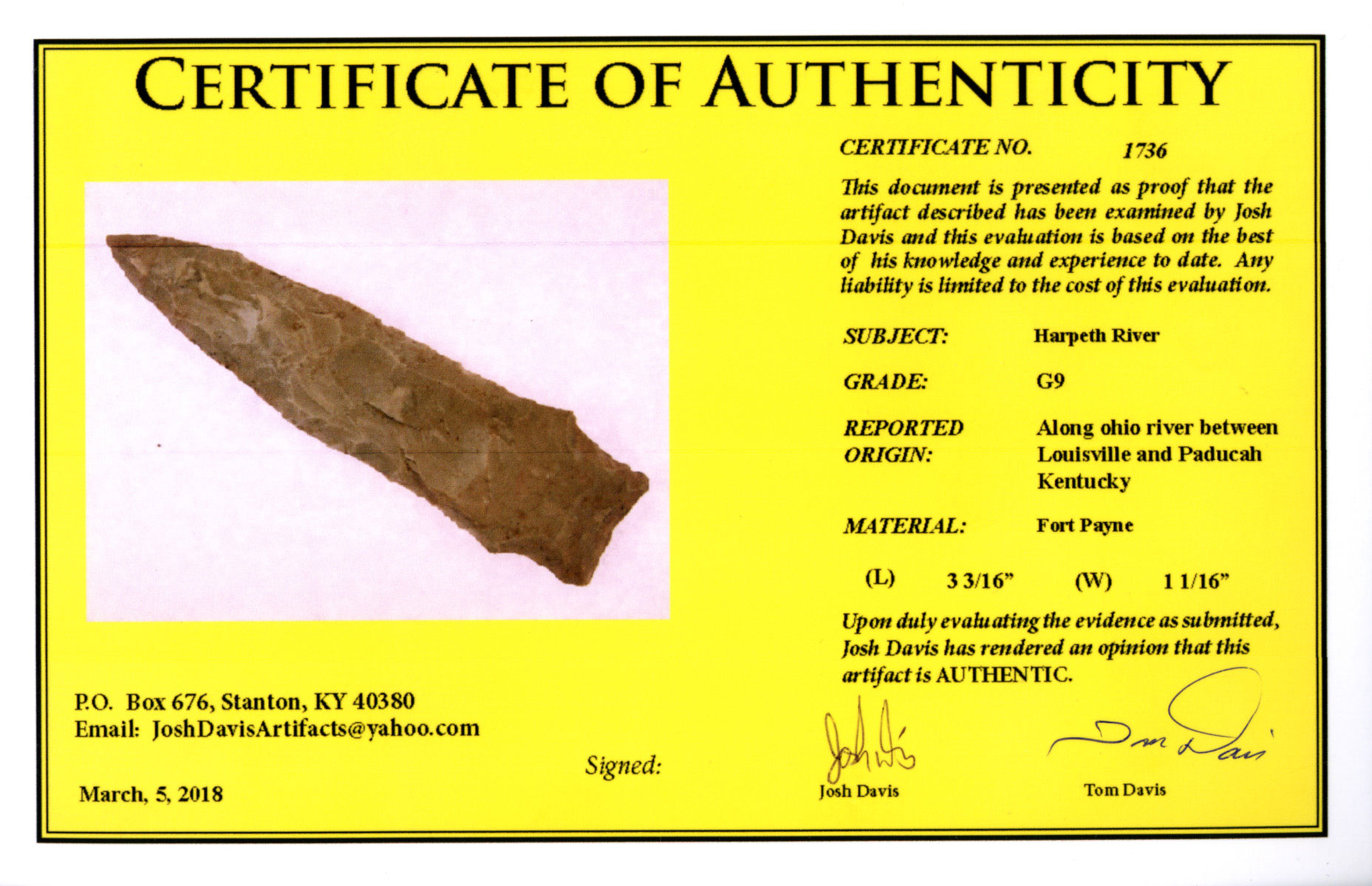 [ Paleo | Archaic | Woodland | Mississippian | HardStone | Pottery | Slate & Bone | Our Guarantee | How To Order | Home ]