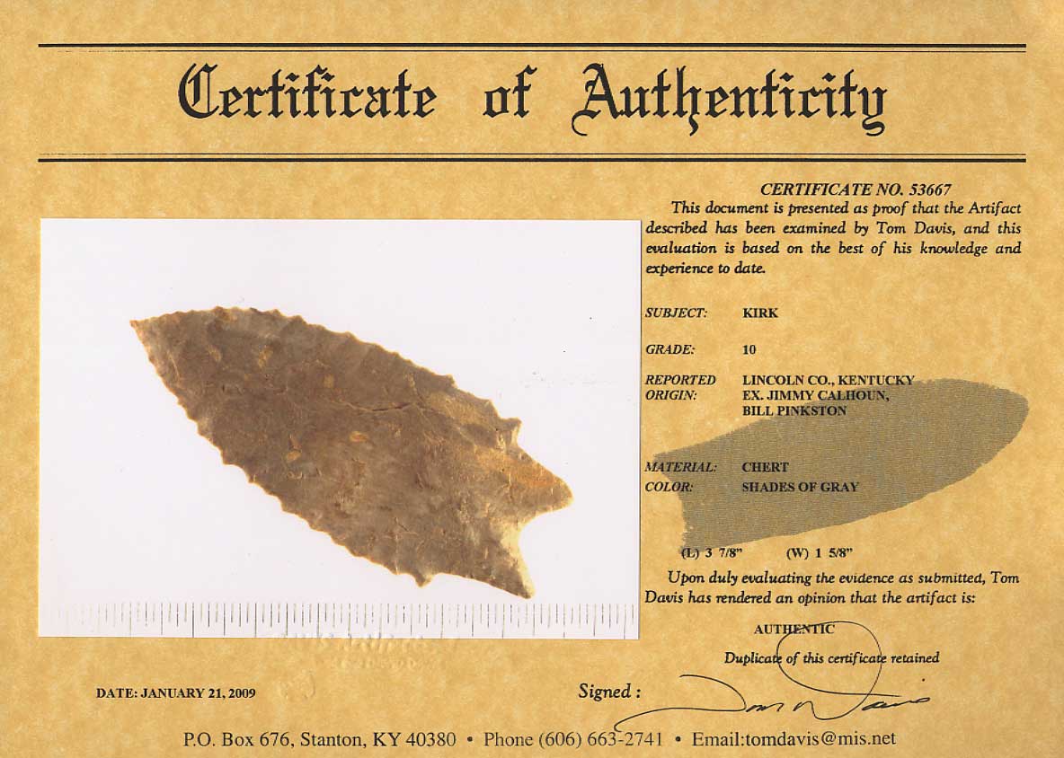 [ Paleo | Archaic | Woodland | Mississippian | HardStone | Pottery | Slate & Bone | Our Guarantee | How To Order | Home ]
