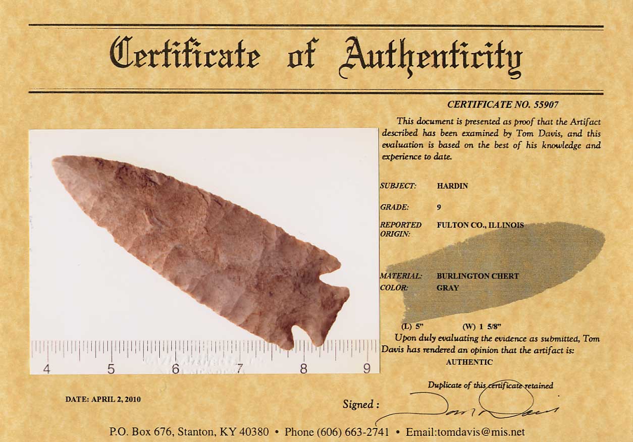 [ Paleo | Archaic | Woodland | Mississippian | HardStone | Pottery | Slate & Bone | Our Guarantee | How To Order | Home ]