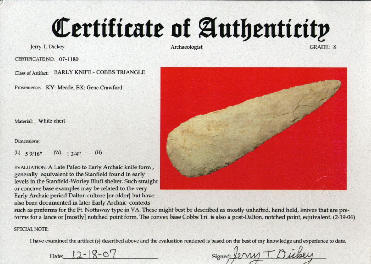 [ Paleo | Archaic | Woodland | Mississippian | HardStone | Pottery | Slate & Bone | Our Guarantee | How To Order | Home ]