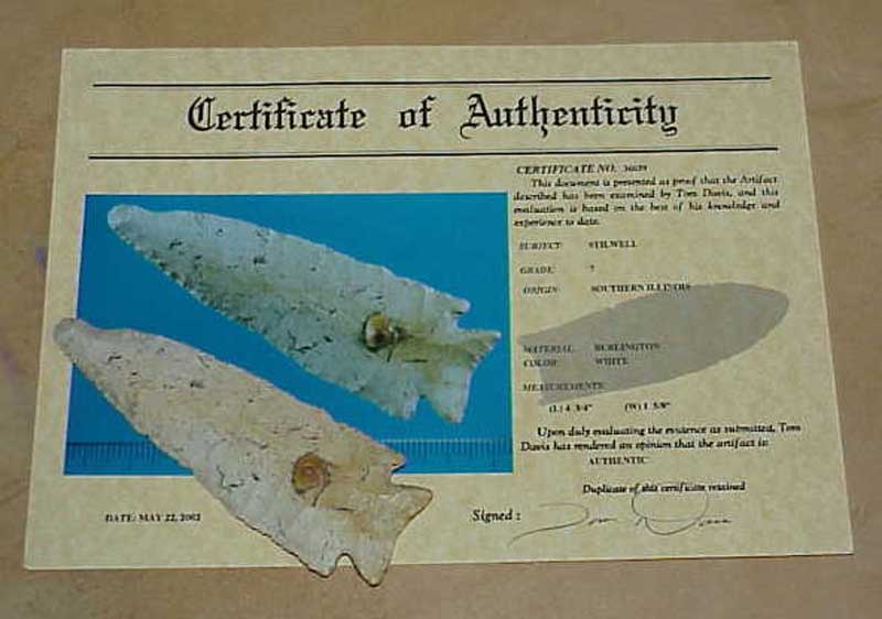 [ Paleo | Archaic | Woodland | Mississippian | HardStone | Pottery | Slate & Bone | Our Guarantee | How To Order | Home ]