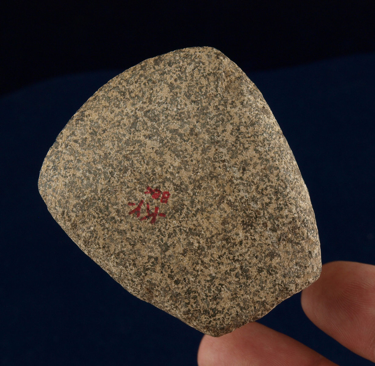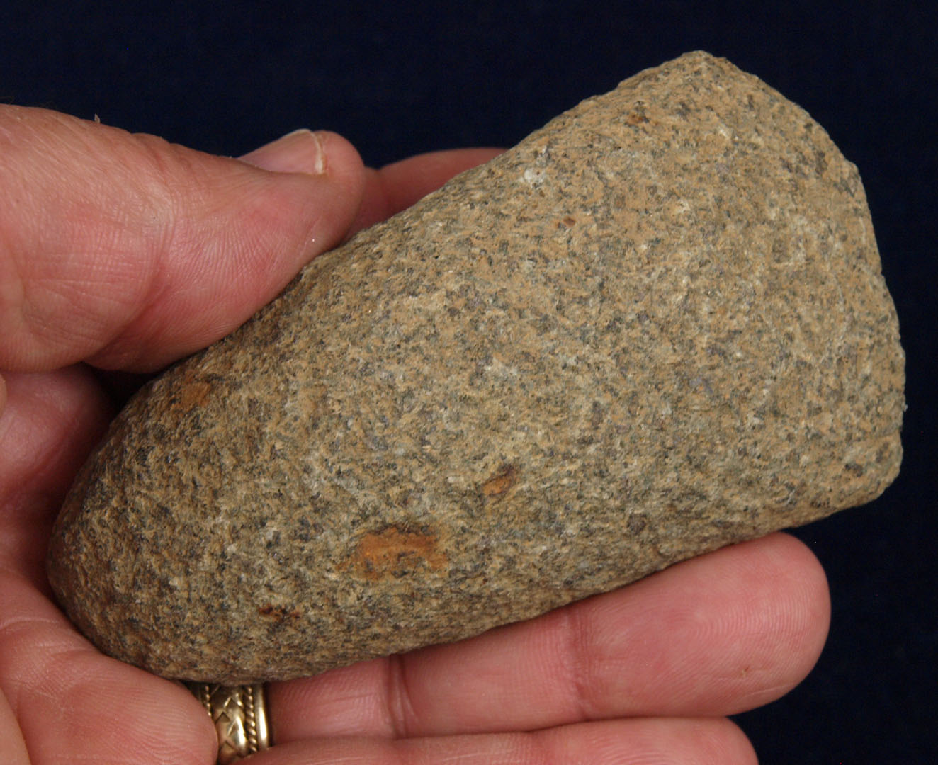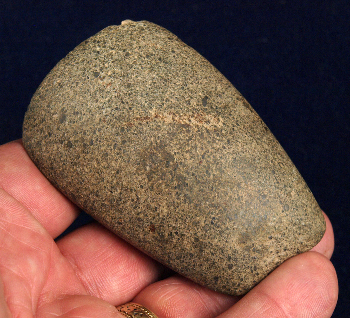 Description: Pecked Hardstone Celt - Here is a Great study piece as it was left in unusual stage.   It is fully pecked out but left unpolished!  It is rare to find an example in this stage!  It was recovered in Lawrence County, Ohio sometime between 1940 and 1960.  Out of the H. Waddell Collection.  Ex- Monty and Jewdy Pennington