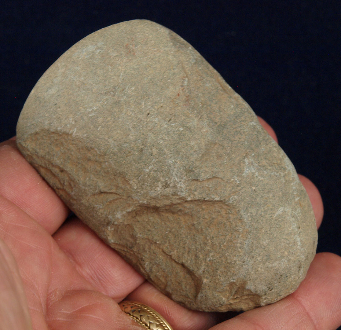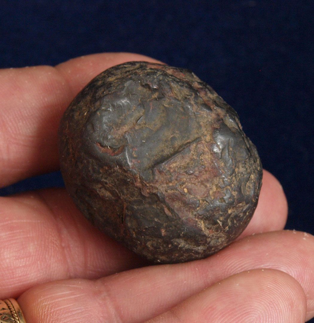 Description: Hematite Hammer Stone or preform - This Hammer Stone or preform has been pecked into the current shap and shows some signs of having been ground.  It was recovered in Lawrence County, Ohio sometime between 1940 and 1960.  Out of the H. Waddell Collection.  Ex- Monty and Jewdy Pennington
