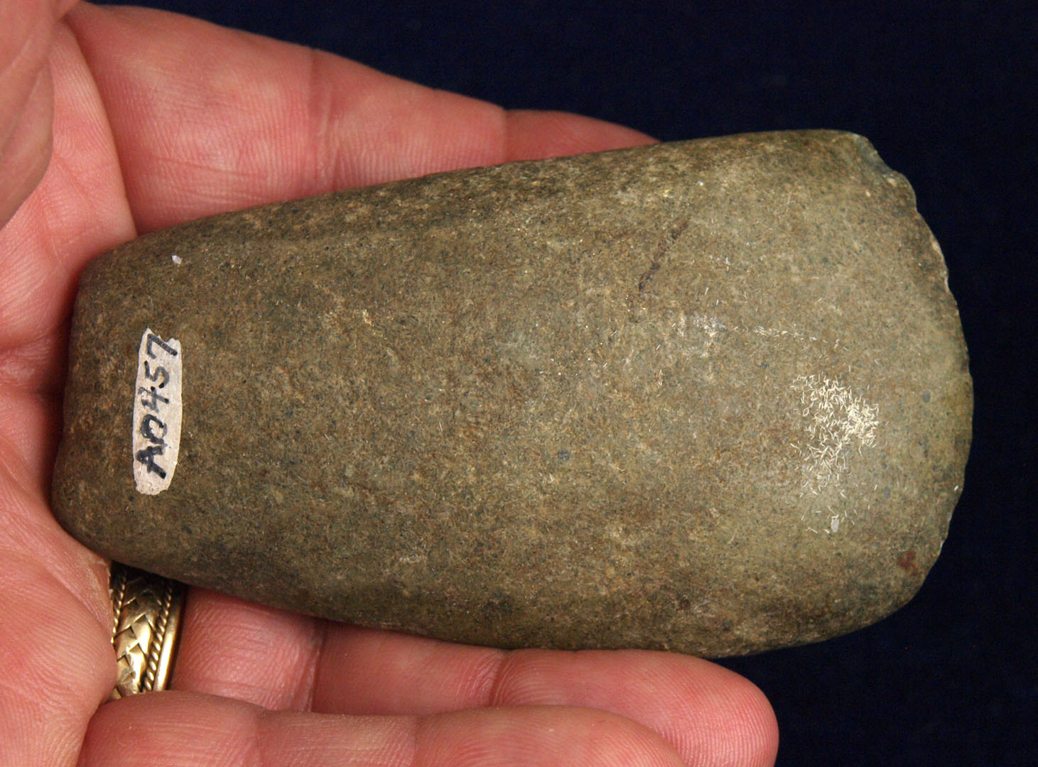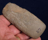 Description: Hardstone Celt with Fine Bit - This celt was found Lawrence County, Ohio sometime between 1940 and 1960.  It has a fine polished bit.  Out of the H. Waddell Collection.  Ex- Monty and Jewdy Pennington